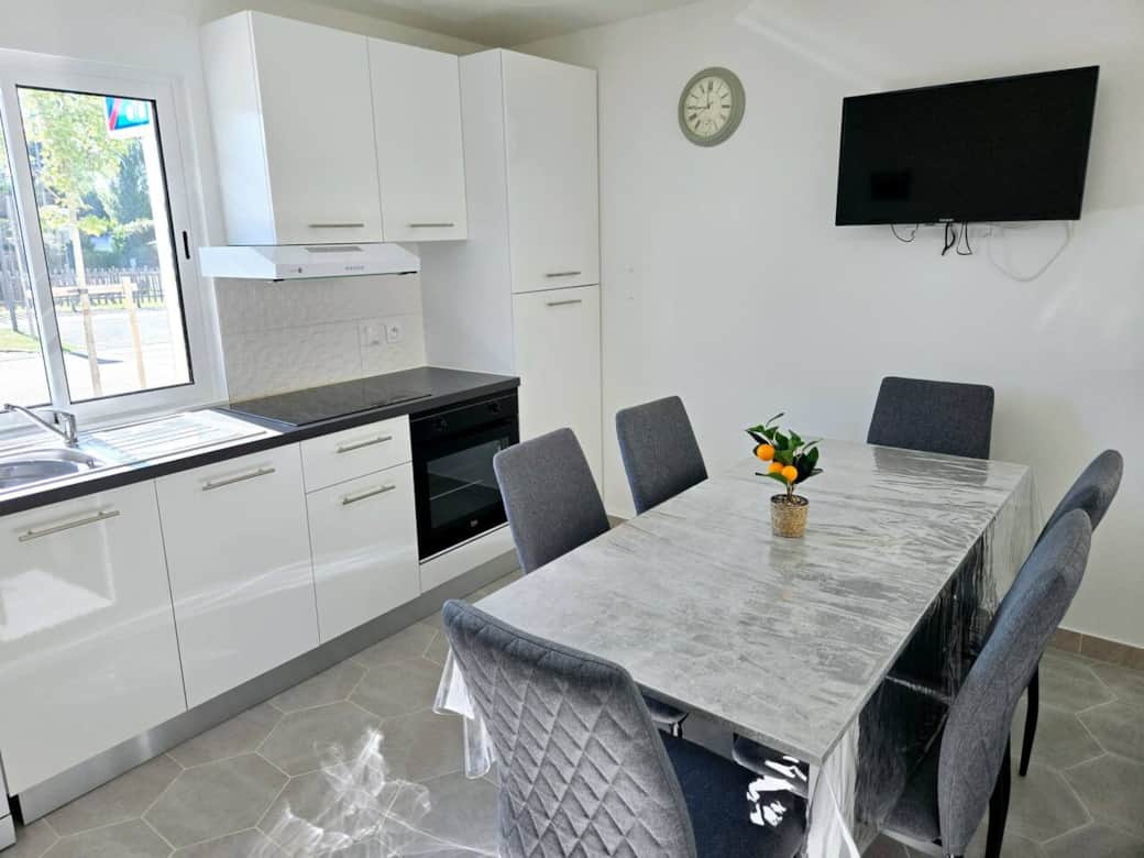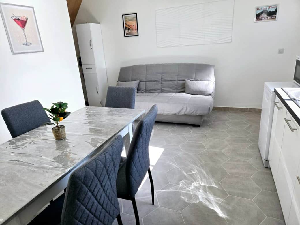 Appartement confortable pour 6 personnes, idéalement situé à Cabourg. Il dispose d'une Terrasse privée parfaite pour vos repas en plein air, d'un parking privé sécurisé et d’un accès à une cour commune. Bien équipé et lumineux, c’est le lieu idéal pour un séjour en famille ou entre amis, à proximité de la plage et des commodités. Bienvenue dans notre appartement de 64 m² idéalement situé à Cabourg, à seulement 6 minutes à pied de la plage ! Parfait pour des vacances en famille ou entre amis, il peut accueillir jusqu'à 6 personnes. 🛏️ Chambres : Au Première étage avec Barrière enfants 1 chambre avec un lit double 1 chambre avec deux lits simples Les lits offre un confort digne d’un hôtel avec un matelas et des oreillers hautes de gamme. Chaque chambre est équipée d'une télévision, d'un coffre fort et d'un ventilateur portatif. 🚿 salle de bain : Douche à l'Italienne Sèche Serviette Sèche cheveux 📺 Salon et salle à manger : Canapé convertible confortable Une Télévisons 6 Chaises et Une Table à manger 🍽️ Équipements : Cuisine entièrement équipée : Four , Micro Onde , Lave Vaisselle , Grille Pain , Bouilloire , Presse agrume , Frigidaire , Aspirateur , Cafetière, WI-FI. 🌞 Terrasse pour vos repas en extérieur : 1 Table 6 Chaises 2 Longue Chaise Etendoir 🚗 Extras : Parking privé Cour commune avec barbecue à partager avec d'autres locataires ( La cour et le barbecue sont partagés. Merci de les laisser propres après chaque utilisation, pour le confort de tous ). Localisation idéale : en face d’un loueur de vélos, à 6 min de la plage à pied et à 20 min à pied du golf de Cabourg Nous souhaitons que nos locataires vivent une expérience unique à Cabourg, dans un lotissement privé et sécurisé où règnent convivialité et partage. Cet environnement rare offre un cadre paisible pour profiter ensemble des moments de détente, tout en créant des souvenirs chaleureux dans un lieu sécurisé et accueillant. Des équipements bébé peuvent être mis a disposition sur demande et sans frais supplémentaire. Le Linge est en option ( sous frais supplémentaires ) Pensez à le Demander.